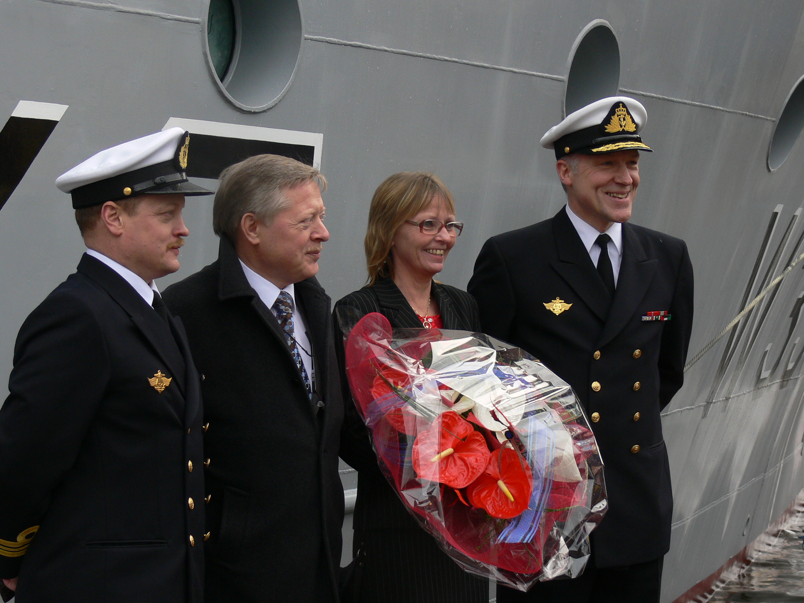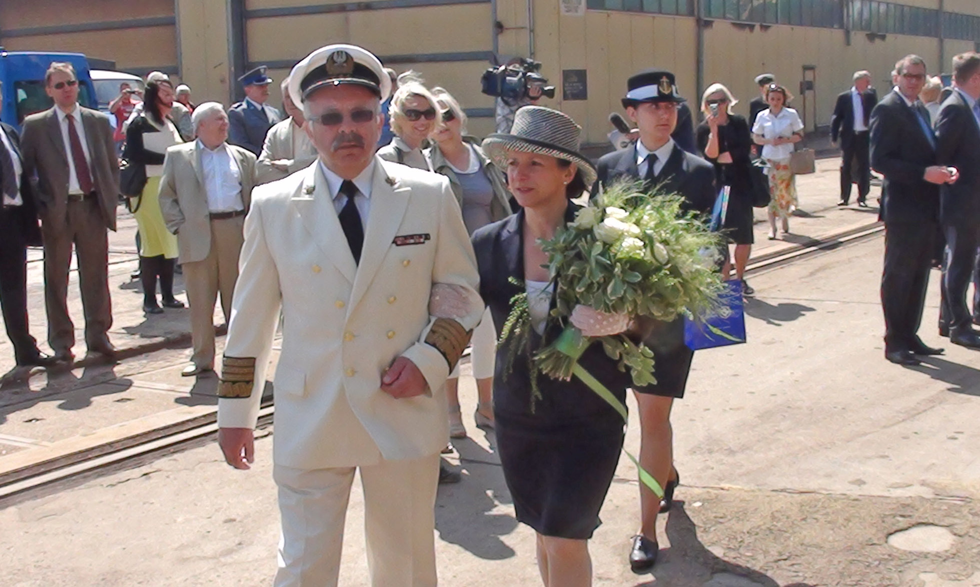 Jeszcze bardziej natrudziła się matka chrzestna (także w Gryfii) patrolowca dla Norwegii, która rozbiła szampana na sznurku dopiero za jedenastym razem.