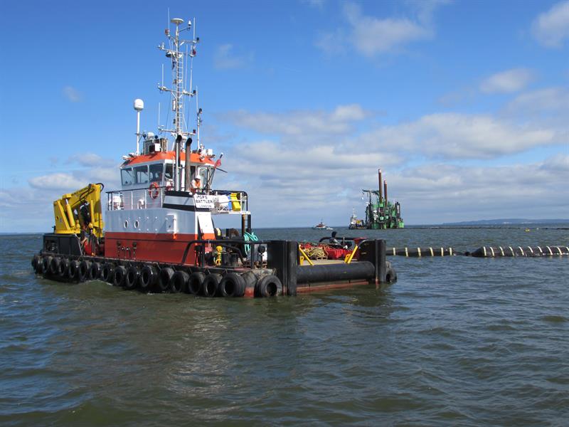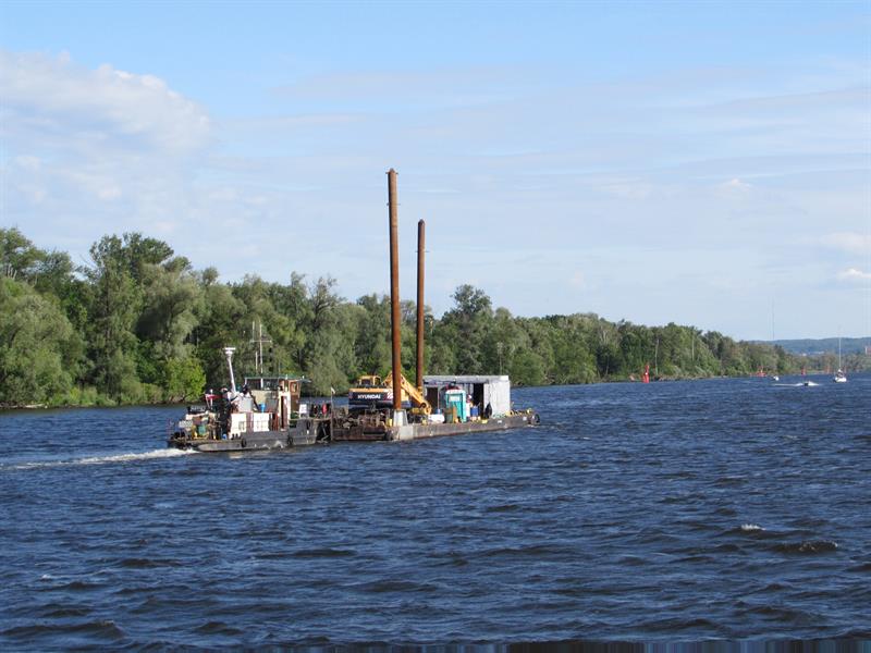 Na placu budowy pracują pontony robocze wyposażone w żurawie stacjonarne, jednostki żeglugi śródlądowej (pchacze) do manewrowania pontonami, wysoce wyspecjalizowane jednostki śródlądowe wyposażone w dźwigi hydrauliczne czy łodzie robocze do transportu personelu. Pogłębiarkę wspierają m.in. „GPS Battler” czy holownik „Odin”.