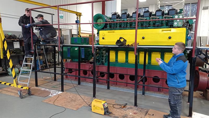 – Stanowisko dydaktyczno-edukacyjne okrętowego silnika spalinowego pozwala na połączenie wiedzy teoretycznej z praktyczną – mówi Władysław Sietko-Sierkiewicz, kierownik warsztatów szkolnych. – Uczniowie na tym stanowisku uczą się między innymi, jak demontować, sprawdzić i zamontować głowicę silnika z wykorzystaniem specjalistycznych kluczy pneumatycznych i hydraulicznych, wyjęcia tłoka, pomiaru i wymiany pierścieni tłokowych, pomiaru sprężynowania wału korbowego czujnikami specjalistycznymi, wyjęcia, pomiaru, weryfikacji montażu tulei cylindrowej.