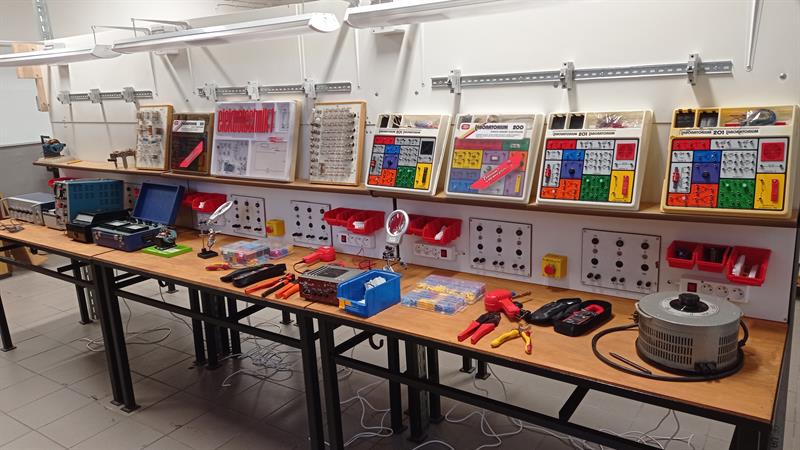 – Każde stanowisko jest zamontowane na specjalnie zaprojektowanym stole laboratoryjnym, na którym – w zależności od aktualnych planów dydaktycznych – można w sposób szybki i wygodny skonfigurować potrzebny sprzęt automatyki, elektroniki czy elektrotechniki oraz układy wykonawcze, jak i pomiarowe – wyjaśnia kierownik warsztatów. – Stoły są wyposażone w zaciski z napięciem prądu zmiennego o napięciu 230 V, 12 V i 6 V oraz prądu stałego o napięciu 12 V i 6 V, a także autotransformatory pozwalające na regulację napięcia.