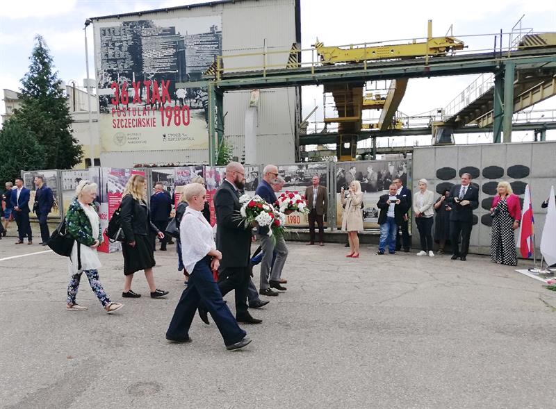 Podczas obchodów 42. rocznicy podpisania Porozumień Sierpniowych w Szczecinie w uroczystości przed bramą Stoczni Szczecińskiej uczestniczyły delegacje wielu przedsiębiorstw i instytucji związanych z gospodarką morską. Przy tablicy ofiar Grudnia ’70 kwiaty złożyli m.in. przedstawiciele Polskiej Żeglugi Morskiej (z dyrektorem naczelnym Andrzejem Wróblewskim na czele) oraz Zarządu Morskich Portów Szczecin i Świnoujście.