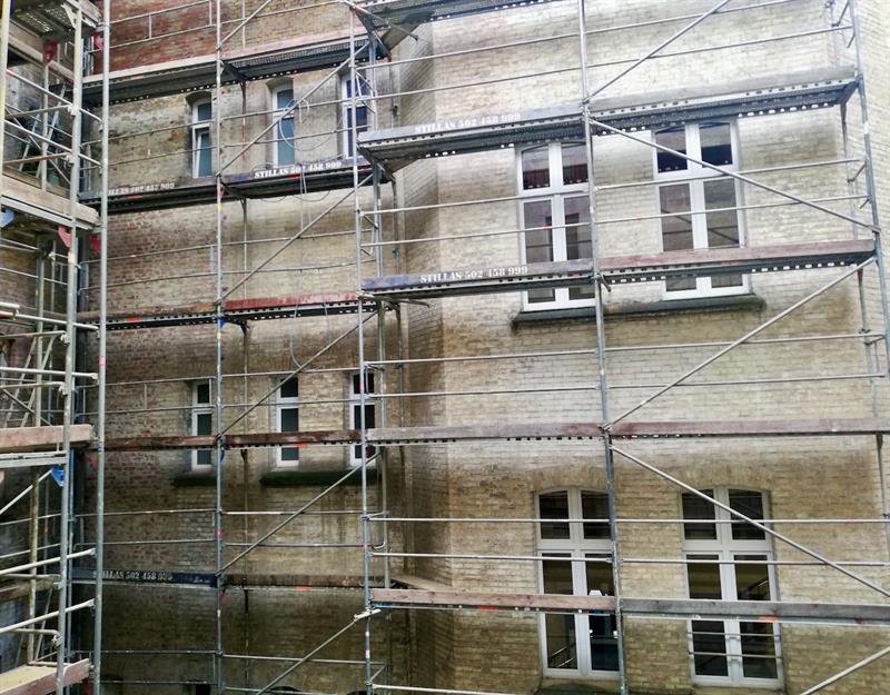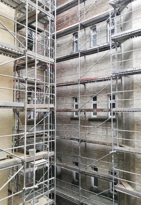 Przedmiotem zamówienia jest wykonanie renowacji ścian i posadzki dziedzińca. Zakres prac obejmuje: wykonanie prawidłowej izolacji poziomej i pionowej posadzek i ścian, remont i konserwację ścian, zamurowanie świetlików w posadzkach, wykonanie nowych obróbek blacharskich parapetów ostatniej kondygnacji budynku, a także przemurowań pasów podrynnowych okalających dziedziniec.