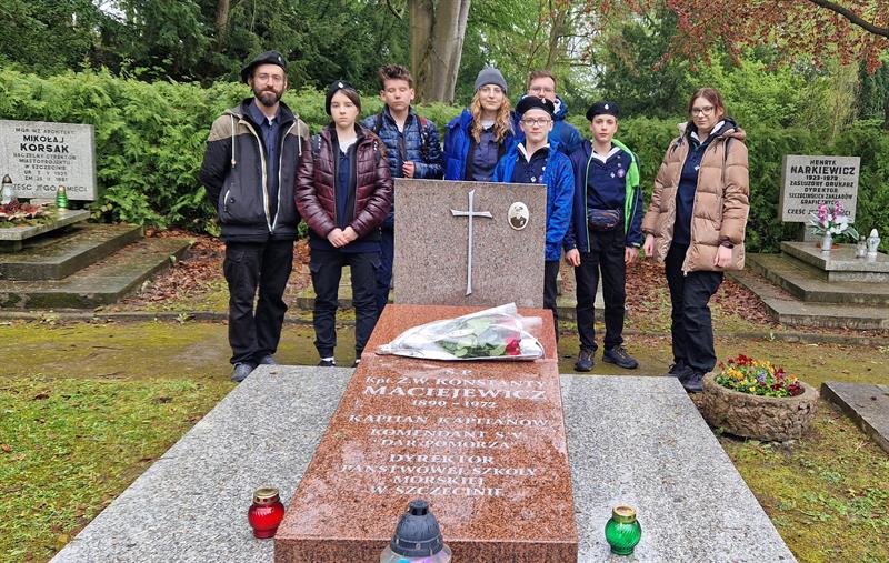 W sierpniu 2014 r. młodzi sochaczewianie po raz pierwszy złożyli kwiaty na grobie swojego bohatera w Szczecinie oraz spotkali się z jego synem Olgierdem Maciejewiczem. Od tej pory co jakiś czas organizują wyjazd, by oddać hołd patronowi drużyny. Utrzymują stały kontakt z przyjaciółmi ze Szczecina, szczególnie z rodziną Konstantego Maciejewicza oraz z Ludmiłą Kopycińską – miejskim przewodnikiem, miłośniczką portu i morskich tradycji. Od lat pani Ludmiła stara się przywrócić pamięć o legendarnych kapitanach: K. Maciejewiczu i Antonim Ledóchowskim.
