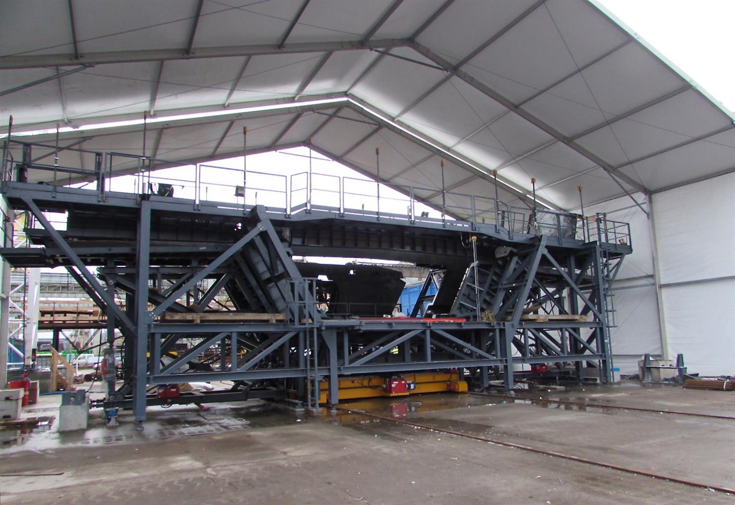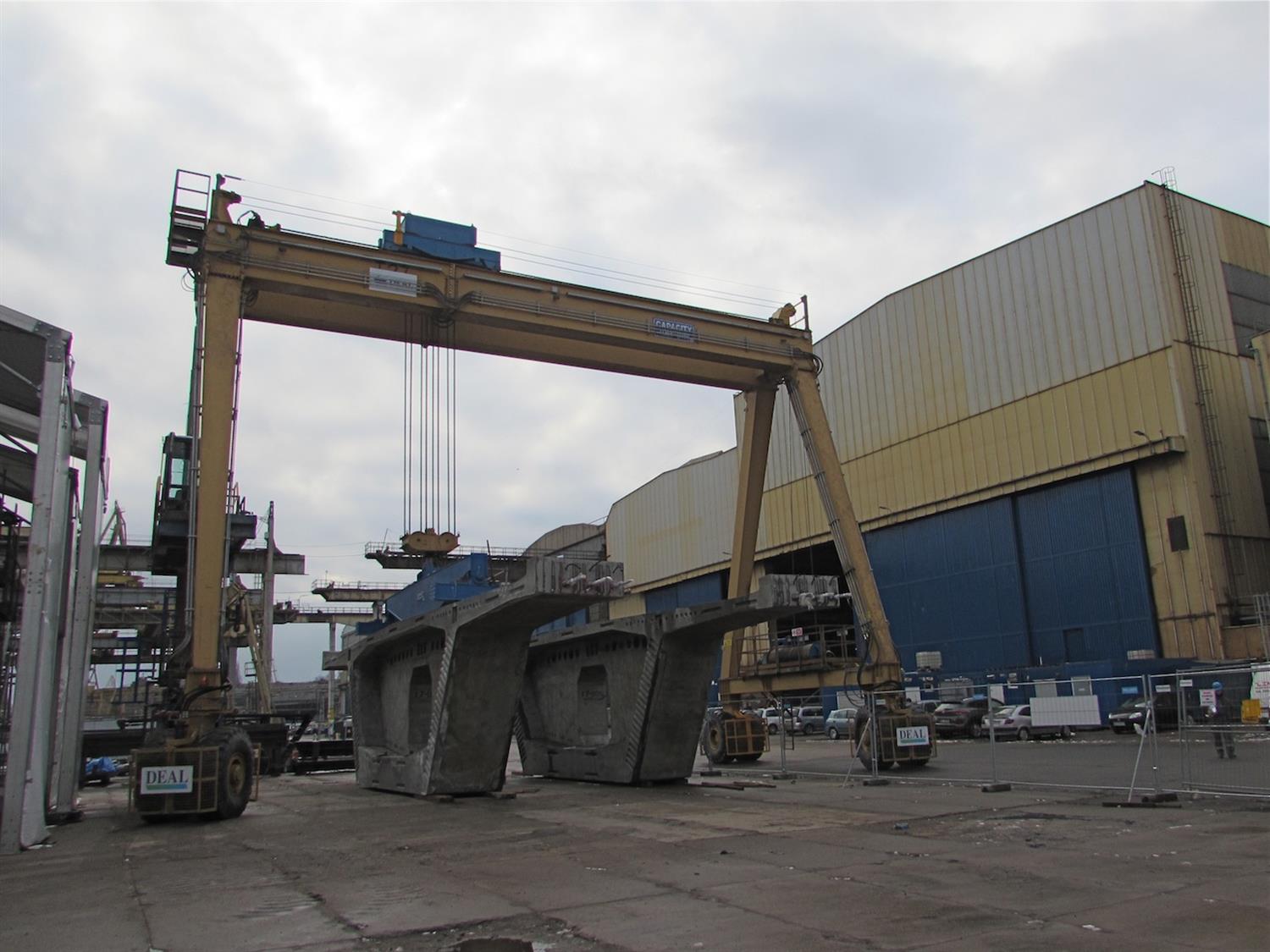Elementy mostu powstają przy wykorzystaniu stalowych szalunków hydraulicznych. Gotowe segmenty będą transportowane na place przy pochylni Wulkan. Następnie za pomocą suwnicy bramowej o udźwigu 450 ton zostaną załadowane na pontony i popłyną do Danii.