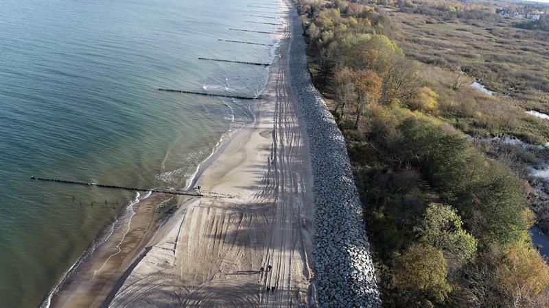 Dzięki niej nie tylko poszerzono plażę, ale przede wszystkim zabezpieczono brzeg morski przed niszczycielskim działaniem sztormów.