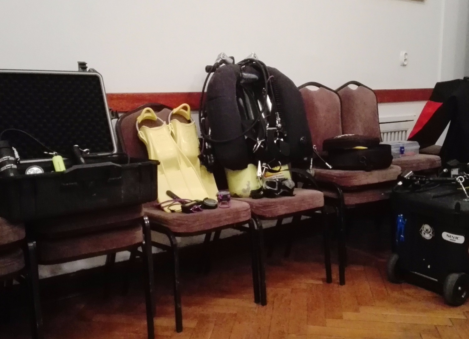 Na zdjęciu: Spotkaniu towarzyszyła wystawa fotografii pokazujących miejsca, do których dotarli nurkowie.