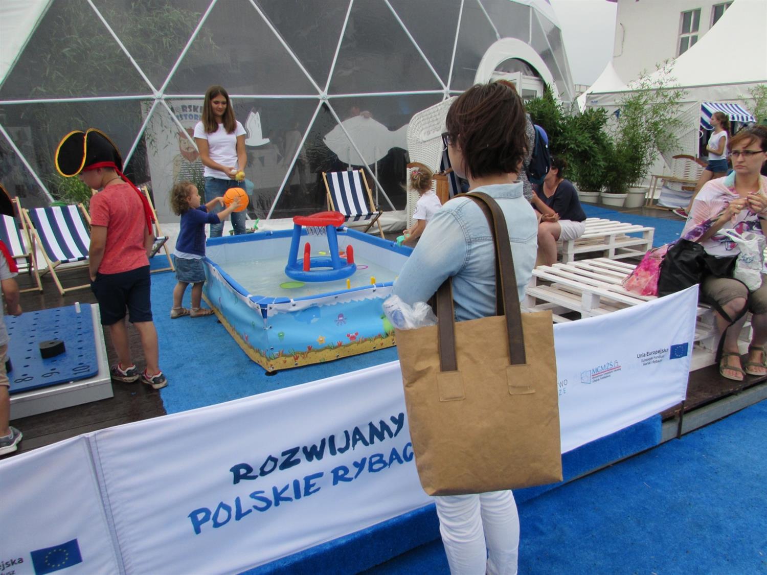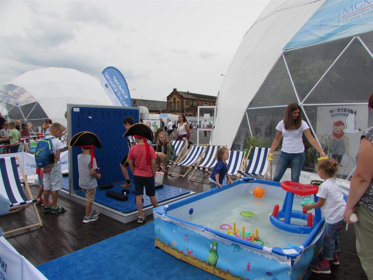 Ministerialne stoisko zajęło największą kopułę w strefie namiotów sferycznych na Łasztowni. Na zewnątrz namiotu powstała 100-metrowa strefa relaksu, zaaranżowana w klimacie morskim i wakacyjnym. Były kosze plażowe, leżaki, mały basen… Wypoczywały tam całe rodziny, a najmłodszym – jak zauważyliśmy – szczególną radość sprawiały zabawy z wodą. Dużym zainteresowaniem wśród najmłodszych cieszyły się też zabawy edukacyjne czekające w namiocie – krzyżówki, łamigłówki i zajęcia plastyczne.
