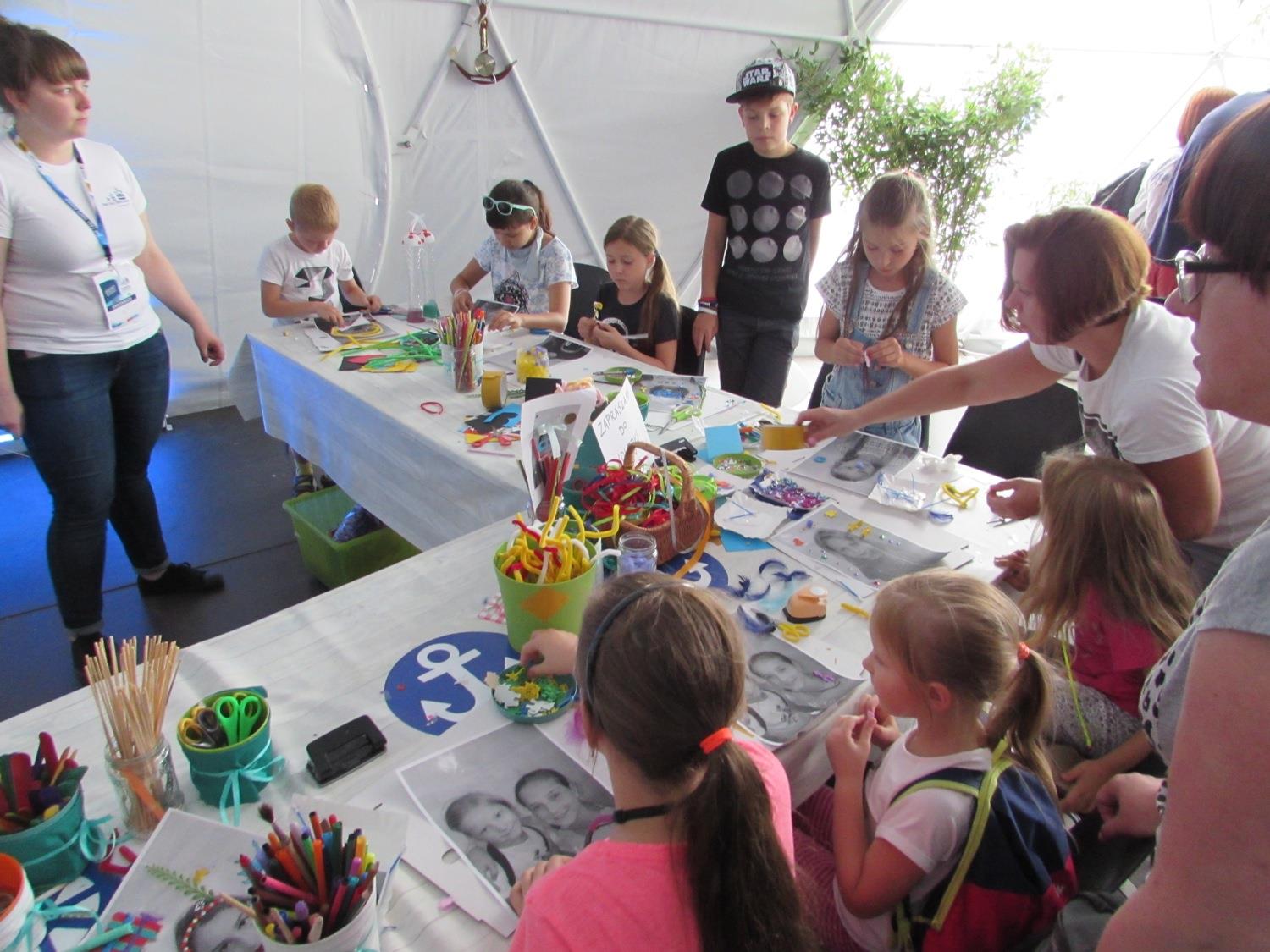– Zostań morskim projektantem i stwórz z nami: szczupaka-przytulankę, ośmiorniczki, morskie girlandy, podwodny świat w słoiku, grę magnetyczną „Wędkarz”, morskie zakładki do książek, wodne autoportrety, bałtyckie woreczki zapachowe – zapraszała Rybia Manufaktura. Chętnych nie brakowało.