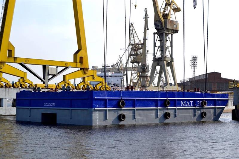 Przed tygodniem (17 maja) na pochylni Wulkan w Stoczni Szczecińskiej odbyło się kolejne wodowanie, tym razem jednostki wykonanej dla armatora z Polski. Na wodzie znalazł się ponton. Ma on 32 m długości i 19 m szerokości. Masa wodowania to około 370 ton.