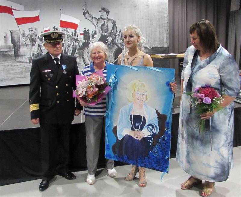 Elżbieta Marszałek otrzymała kwiaty i swój portret, wykonany przez Kamilę Maślak, pracownicę CKE Stara Rzeźnia (jest też twórczynią widocznego w tle muralu, upamiętniającego zaślubiny Polski z morzem).