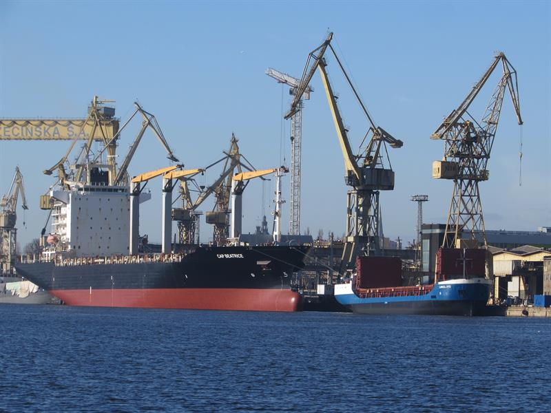 Przy nabrzeżach Stoczni Szczecińskiej cumują statki, które przechodzą tu prace remontowe. Wykonują je różne firmy. Przedwczoraj przypłynął na remont nieduży niemiecki statek towarowy „Lageland” (80 m długości, nieco ponad 2300 ton nośności). Dłużej stoi tu znacznie większy kontenerowiec „Cap Beatrice” (209 m długości, przeszło 34 300 ton nośności).