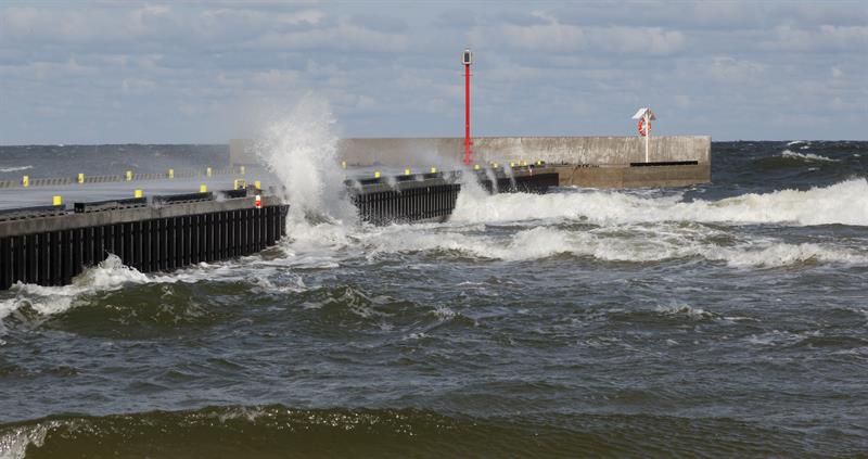 – To pierwsza część, już oddana, zakończona – powiedział Wojciech Zdanowicz, dyrektor szczecińskiego Urzędu Morskiego. – Cała przebudowa falochronu polegała na obudowaniu go nowymi elementami, podniesieniu rzędnej falochronu i parapetu po to, by nie przelewały się już przez niego fale sztormowe, co dzisiaj możemy w lekki sposób przetestować.