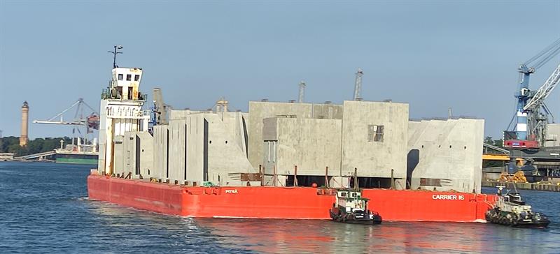 Pod koniec sierpnia ponton „Carrier 16” transportował ze Świnoujścia wielkie betonowe konstrukcje. Jak się okazuje, były to ściany oporowe apartamentowców budowanych w Göteborgu, w zachodniej części Szwecji.