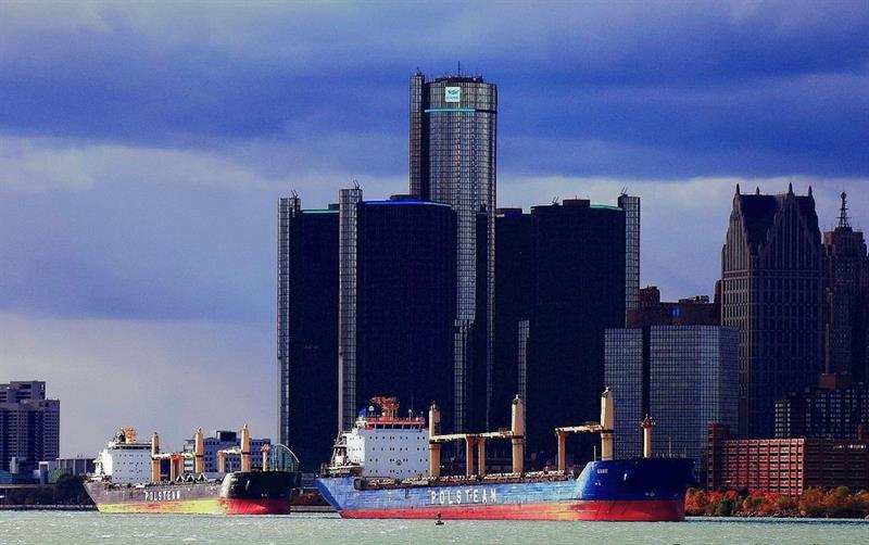 Statki Polskiej Żeglugi Morskiej do portów Wielkich Jezior, takich jak Detroit (na zdjęciu), przywożą z holenderskiego IJmuiden kolie ze stalą wykorzystywaną do produkcji amerykańskich samochodów. Rocznie jest to około 400 tysięcy ton cennego ładunku. W rejsach powrotnych do Europy masowce PŻM przywożą z kolei amerykańskie i kanadyjskie zboże ładowane w takich portach jak Duluth czy Thunder Bay nad Jeziorem Górnym (Lake Superior).