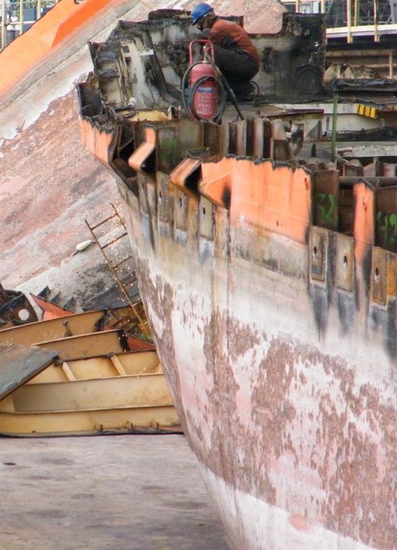 Kiedy statek wyrusza w ostatnią podróż, wyjście w morze właściwie nie różni się od normalnego rejsu. Nie ma uroczystości i pożegnań, nie ma ważnych osobistości. Jeszcze smutniej jest podczas wprowadzania statku na plażę. Plaża to oczywiście określenie czysto umowne. W stoczniach złomowych są to tereny pełne brudu, różnych odpadów, olejów, smarów itp. Wysłużona jednostka musi celowo wjechać na mieliznę, a często podczas tej operacji dochodzi jeszcze do kolizji z innymi statkami, które stoją już na brzegu i są po kawałku cięte.