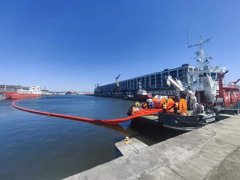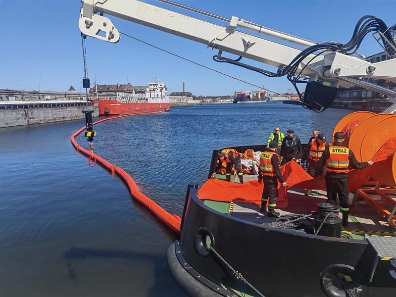 Rankiem 9 maja na terenie szczecińskiego portu odbyły się ćwiczenia z udziałem „Strażaka-28”. Miały one na celu doskonalenie technik sprawiania zapory przeciwrozlewowej, która stanowi wyposażenie jednostki. Zasięg taktyczny zapory wynosi 500 metrów, 40 przęseł po 12,5 metra.