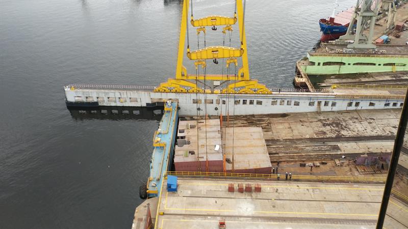 Stoczniowe suwnice wykorzystywane są do przenoszenia ciężkich konstrukcji. Największa ze znajdujących się w Stoczni Szczecińskiej ma udźwig 450 ton i obsługuje ośrodek pochylniowy Wulkan Nowy. W ubiegłym miesiącu posłużyła m.in. do transportu – z placu na pochylnię – bloków sekcji kadłuba jednostki, wyprodukowanych przez firmę G+K SteelCon.