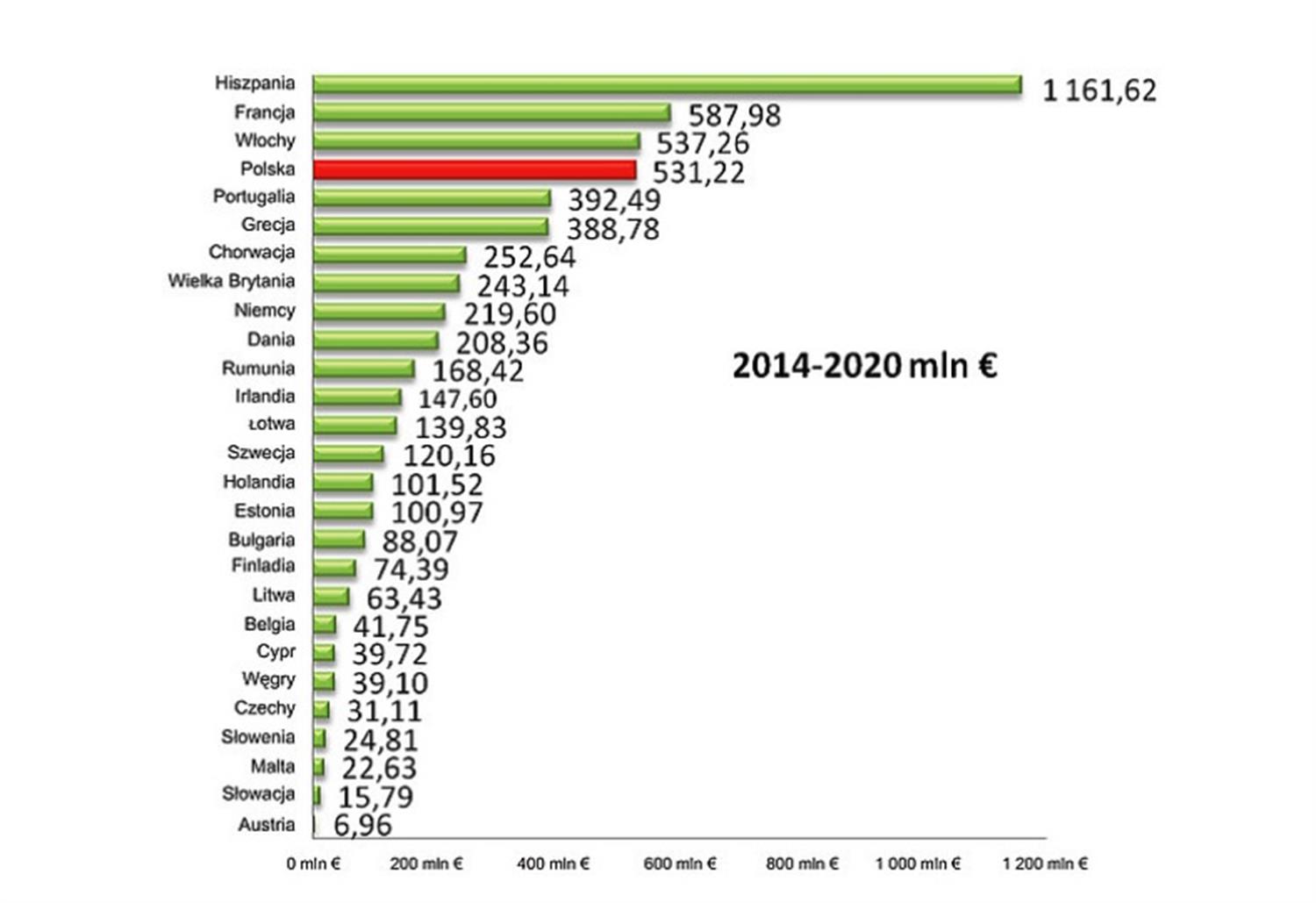 Program wsparcia finansowego z Europejskiego Funduszu Morskiego i Rybackiego Unii Europejskiej (EFMR) dla Polski został zatwierdzony przez Komisję Europejską decyzją z 22 października 2015 r. Polsce przyznano ponad 531 mln euro. Wraz z wkładem z budżetu krajowego (ok. 179 mln euro) łączna kwota wsparcia wynosi prawie 710 mln euro. Oznacza to, że nasz kraj jest w czołówce państw UE, które otrzymają najwięcej środków, a ściślej, w pierwszej czwórce.