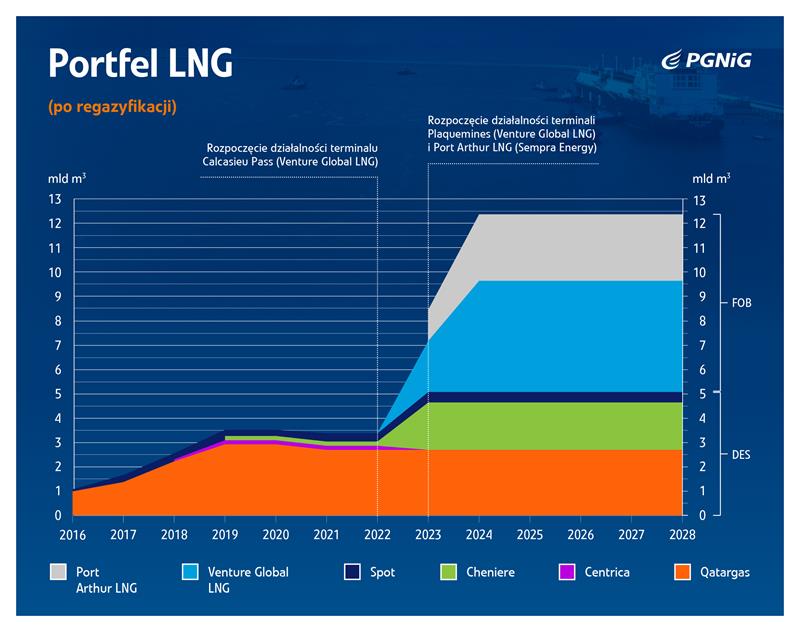 PGNiG będzie coraz bardziej się angażować w sprzedaż ładunków LNG. Od 2022 roku rozpocznie się realizacja amerykańskich kontraktów w formule FOB. Wówczas ładunki z tych umów nie będą musiały docierać do Polski, a PGNiG na bieżąco będzie sprzedawać je na rynku, czyli optymalizować swój portfel.