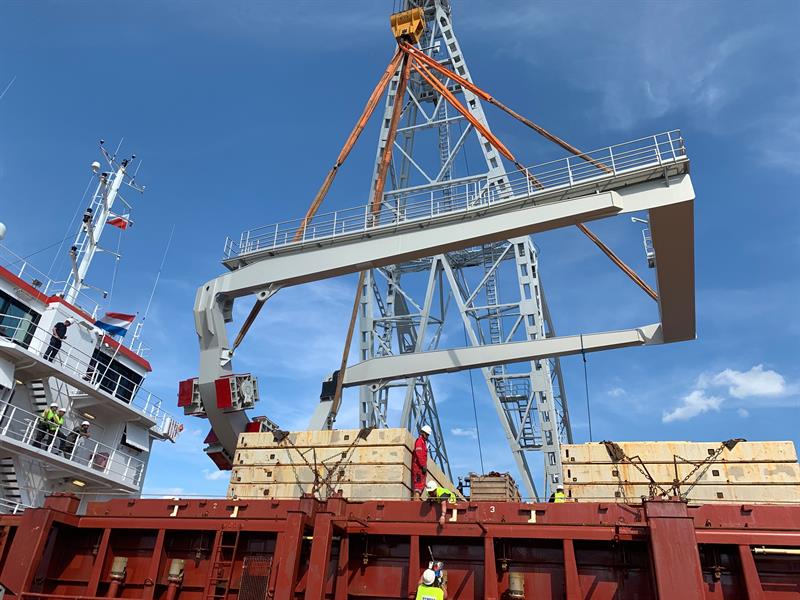 Na zdjęciu: Załadunek konstrukcji Dynpapu na statek za pomocą dźwigu pływającego przeprowadzony 18 czerwca.