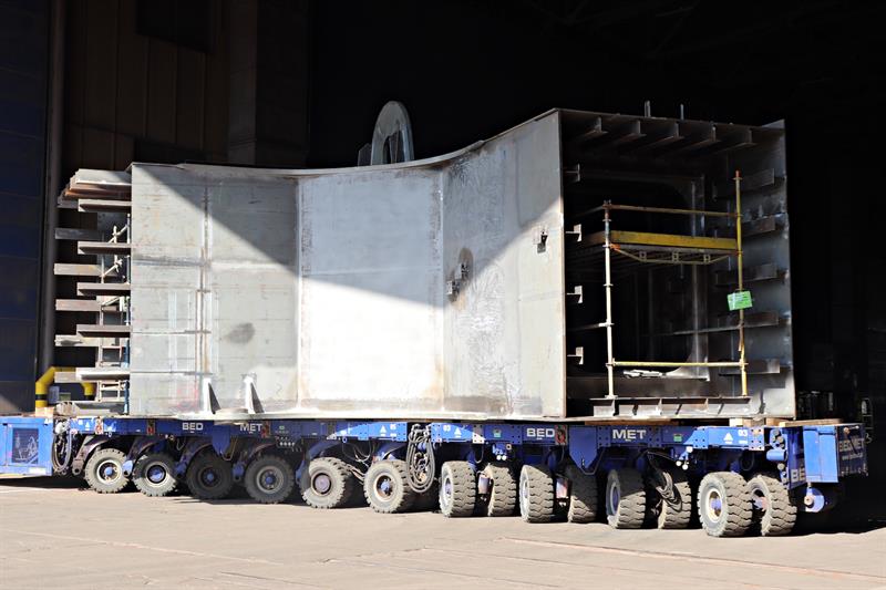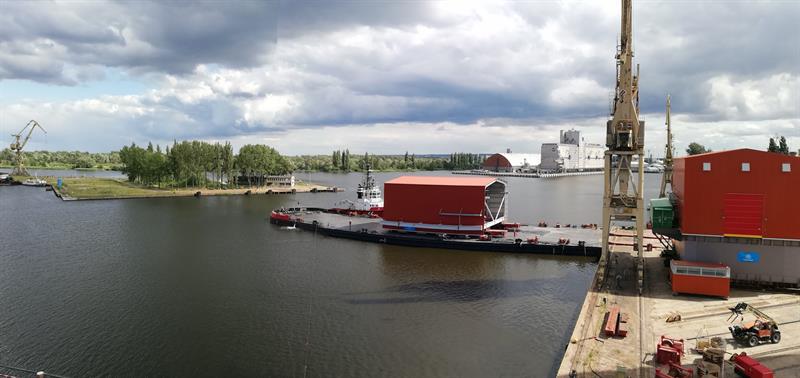 Z kolei policka firma Stalkon 26 czerwca transportowała elementy konstrukcji z sekcjami wieży wiertniczej do komory śrutowniczej Ośrodka Czyszczenia i Malowania Stoczni Szczecińskiej.