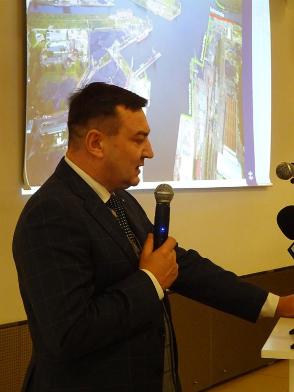 Prezentację postępu prac budowlanych w porcie przedstawił Krzysztof Kwiecień, kierownik projektu.