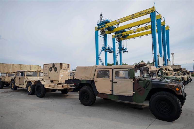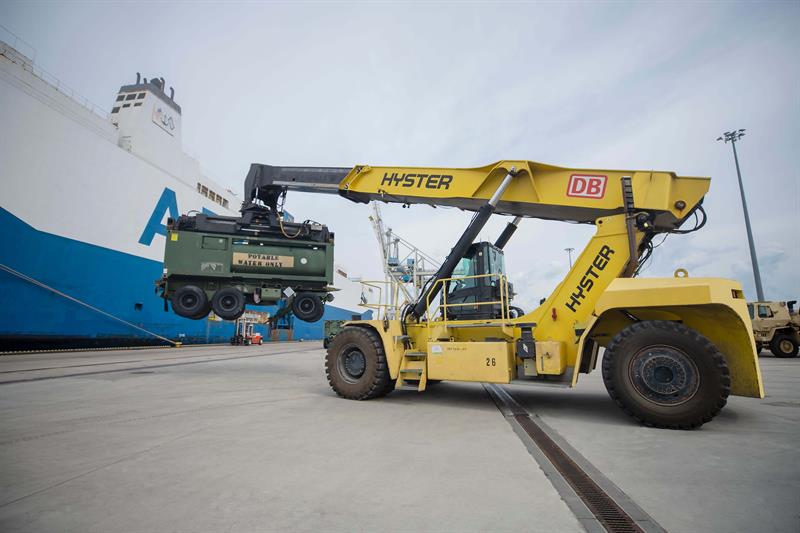 W DB Port Szczecin przeładowujemy wiele ładunków m.in. drobnicowych takich jak aluminium czy celulozę oraz kontenery, tym razem na początku sierpnia załadowaliśmy na statek około 500 sztuk sprzętu wojskowego należącego do armii amerykańskiej. Były to różnego rodzaju pojazdy, naczepy i kontenery, w tym sporo samochodów typu Humvee (właściwie HMMWV, High Mobility Multipurpose Wheeled Vehicle), ale także cystern na paliwo czy na wodę pitną. Przyjechały na naczepach samochodowych i były rozładowywane za pomocą portowych układarek i dźwigów, na statek wprowadzali je pracownicy DB Port Szczecin odpowiedzialni również za kluczowy element bezpieczeństwa transportu, czyli mocowanie pojazdów pasami lub łańcuchami.