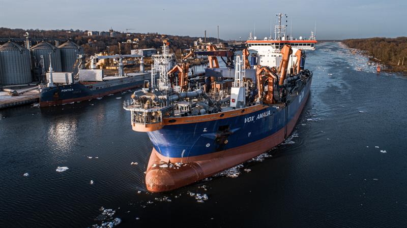 Do prac na torze zaangażowano 10 podstawowych jednostek pogłębiarskich, w tym najnowsze pogłębiarki w branży, jak „Scheldt River”, „Meuse River” i „Vox Amalia”.