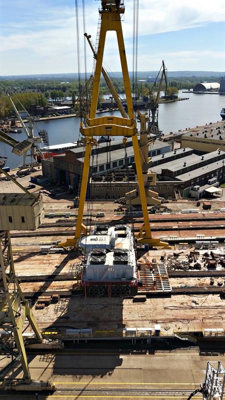 Pod koniec kwietnia w Stoczni Szczecińskiej zwodowano częściowo wyposażoną jednostkę do obsługi farm rybnych. Wykonawcą była firma Mirand. W wodowaniu pomogła 450-tonowa suwnica znajdująca się w ośrodku pochylniowym Wulkan.