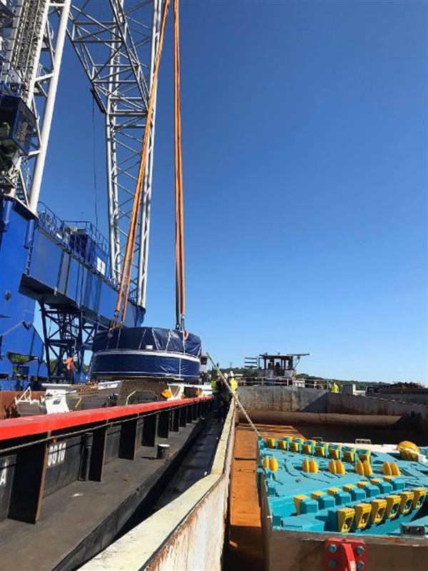 Niemiecki zestaw złożony z pchacza i dwóch barek przypłynął z nimi do Szczecina. Na początku czerwca odbył się przeładunek elementów maszyny na trzy polskie barki należące do szczecińskiej firmy Fabico. Pomagała przy tym suwnica firmy ST3 Offshore. W sobotę 6 czerwca pchacze i barki Fabico wyruszyły z ogromnymi konstrukcjami ze Szczecina w kierunku Malczyc. Po drodze pchacze się zmieniały, łącznie w całej operacji uczestniczyło ich pięć: Fabico-5, Fabico-6, Fabico-7, Fabico-10 i Fabico-11. W ubiegłym tygodniu transport dotarł do Malczyc. Stamtąd części maszyny pojechały ciężarówkami do Łodzi.