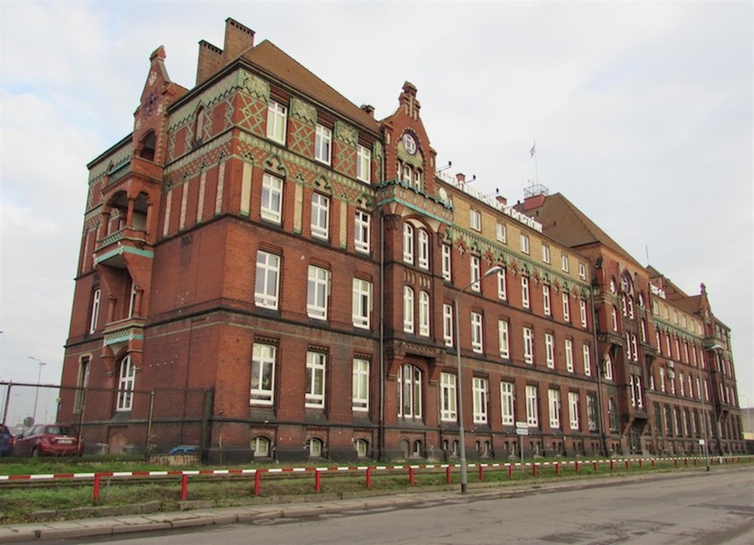 Siedziba ZMPSiŚ ma długą historię. Budynek wraz ze strefą wolnocłową został oddany do użytku w 1899 roku. Prace przy jego wznoszeniu rozpoczęto dwa lata wcześniej. Obiekt posadowiono na południowej granicy ówczesnej ul. Wrocławskiej (dziś Bytomskiej) i równolegle przebiegającej do wolnego obszaru celnego ulicy, prowadzącej do bramy głównej. Stanął w jednakowej odległości od Basenu Zachodniego i Basenu Wschodniego. Frontową ścianę budynku skierowano w stronę portu, a tył stanowi granicę celną.