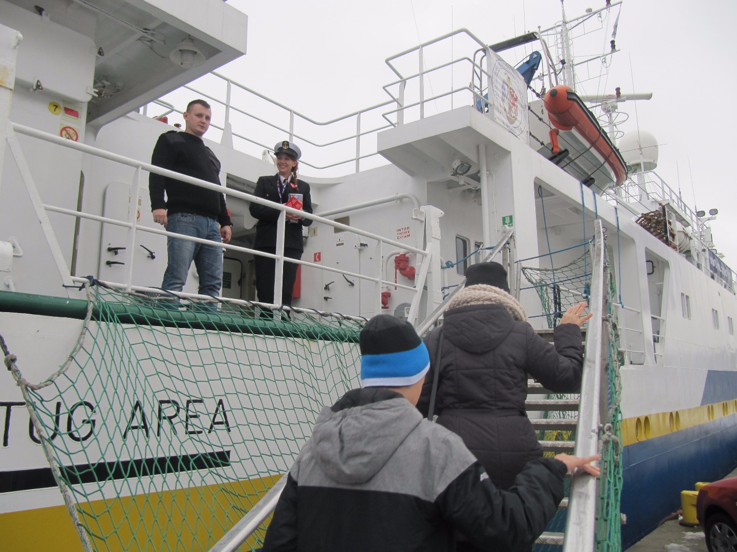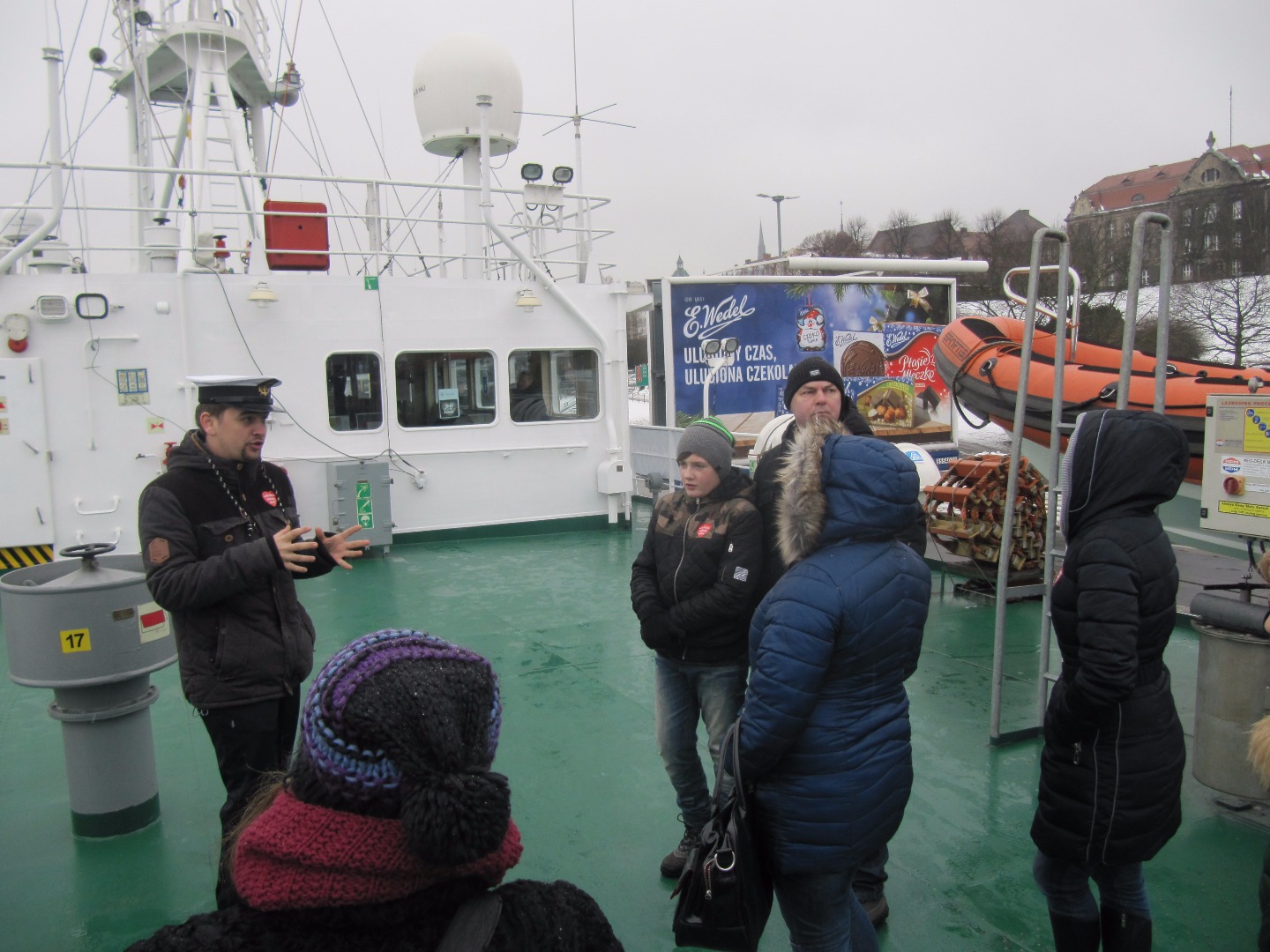 Niedzielne zwiedzanie jednostki rozpoczynało się od górnego pokładu, na którym znajdują się dwie łodzie ratownicze. Pierwsza z nich służy przede wszystkim do szkolenia studentów z zakresu morskiego ratownictwa. Druga może być wykorzystywana w poważnych akcjach tego typu na morzu. Jej atutem jest mocny silnik, który pozwala łodzi na rozwijanie prędkości do 80 kilometrów na godzinę.