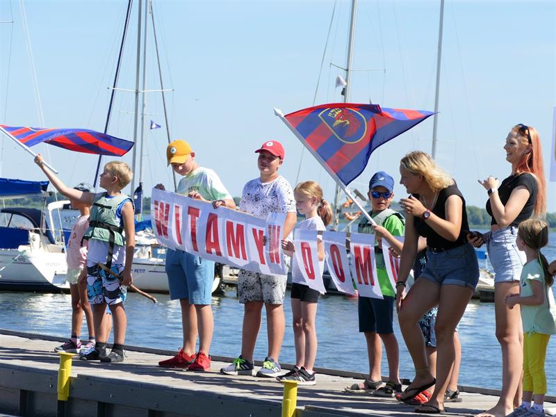 Witamy w domu! – taki napis przywitał załogę jachtu w Centrum Żeglarskim, która spędziła 400 godzin na wodzie i odwiedziła wiele europejskich portów. Na kapitana i załogę oczekiwały w porcie rodziny, przyjaciele, goście, dzieci z półkolonii, a także pracownicy CŻ z jego dyrektorem na czele.