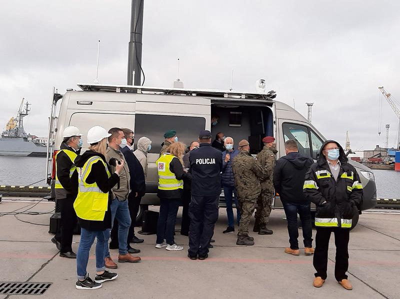– Podczas ćwiczeń wykorzystano najnowsze rozwiązania firmy HERTZ Systems służące do ochrony przed dronami, czyli wersję mobilną z centrum monitorowania – informuje T. Laskowski. – System musiał zlokalizować i rozpoznać drony „własne” portowe i odróżnić je od „obcych”, które wtargnęły na teren portu, a w kolejnym kroku drony intruzów przejąć i zneutralizować. System HAWK nie tylko ustala obecną pozycję drona z dokładnością GPS, ale także pozycję startową oraz wskazuje aktualne miejsce przebywania jego operatora. Po przejęciu kontroli nad „wrogim” dronem jego operator przestaje otrzymywać informacje wideo i telemetryczne. System HAWK w wersji mobilnej umożliwia rozpoznanie i neutralizację drona lub roju dronów w odległości do 7 km.