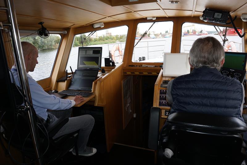 Wnętrze jednostki wyłożone jest drewnem. Przed kapitanem tej okazałej „motorówki” Lechem Fudalem zegary i ekrany. Nowocześnie także przed zasiadającym po lewej jego stronie hydrografem. Monitory. Na jednym z nich pojawia się elektroniczna mapa odcinka dna.