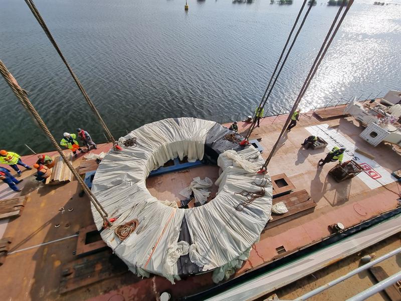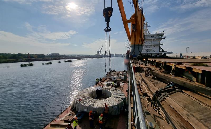 W portach Szczecin i Świnoujście zdarzają się nietypowe operacje przeładunkowe. W tym miesiącu do szczecińskiego portu dotarły drogą morską z hiszpańskiego Santander elementy maszyny TBM, która wydrąży tunel na budowanym odcinku drogi S19 Rzeszów – Babica. Ze statku zostały przeładowane na barki i pontony, po czym odpłynęły ze Szczecina Odrą w rejon Opola. Jedną z głównych części maszyny jest tarcza skrawająca o masie 220 ton. Łącznie 13 transportowanych rzeką elementów waży 1783 tony.