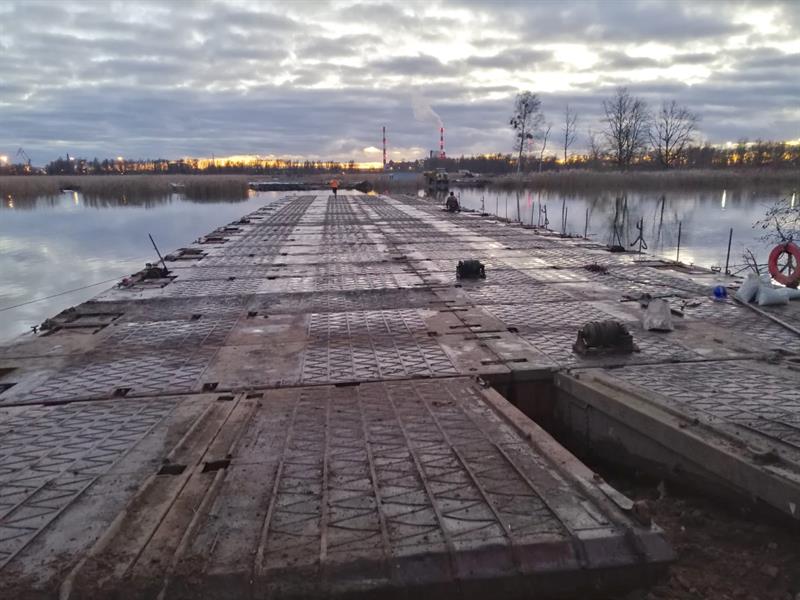 Aby umożliwić sprawny transport materiału do budowy obwałowań na wyspie, zamontowano tymczasowy most pontonowy na Duńczycy.