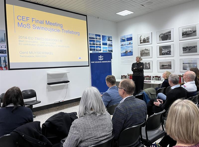 Końcowe spotkanie dwóch projektów dofinansowanych z unijnego instrumentu CEF, realizowanych w ramach tzw. autostrady morskiej (ang. Motorway of the Sea – MoS), odbyło się 6 lutego br. w Świnoujściu. Ich beneficjentami byli: szwedzki port Trelleborg, gmina Trelleborg oraz Zarząd Morskich Portów Szczecin i Świnoujście.