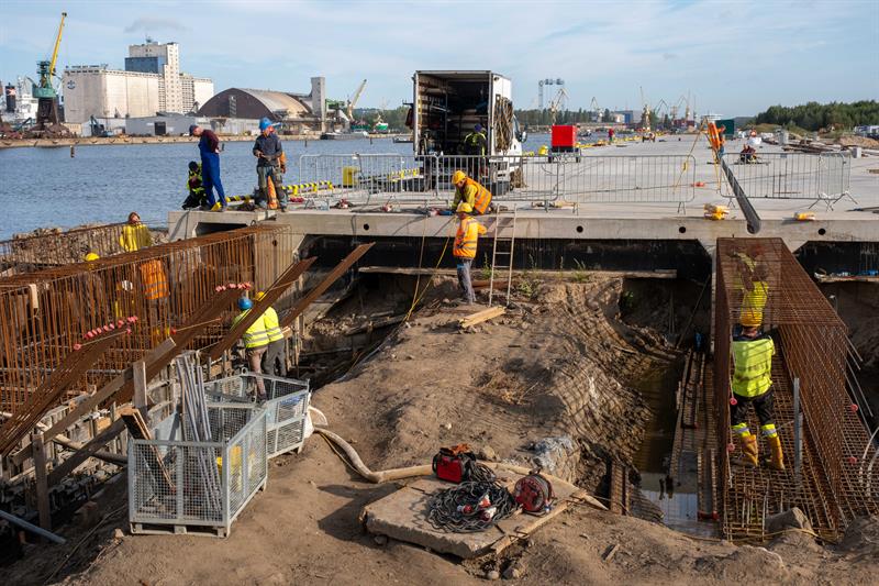 Odnosząc się do inwestycji w rejonie Kanału Dębickiego, poinformował, że gotowe są już praktycznie nabrzeże Norweskie i ścianka na nabrzeżu Duńskim.