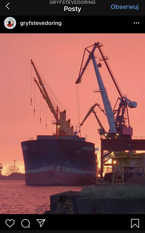 gryfstevendoring sfotografował cumujący przy nabrzeżach Bulk Cargo w Szczecinie, zbudowany w 2013 roku i pływający pod banderą Malty, statek Nordloire (długość 189 m / szerokość 28 m). Gratulujemy fajnego ujęcia.