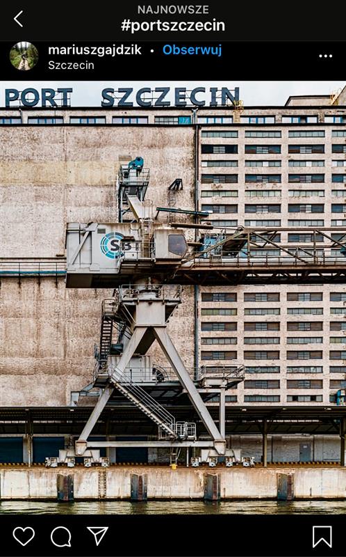 mariuszgajdzik podpisał swoje zdjęcie: „Znów jesteśmy w Szczecinie, ciągnie nas do tego miejsca (…) Ciekawa perspektywa, żeby zobaczyć miasto i porobić parę zdjęć”. Pan Mariusz na co dzień mieszka w Warszawie. Mówiąc krótko, takie rzeczy tylko w porcie Szczecin. Gratulujemy fajnego ujęcia.