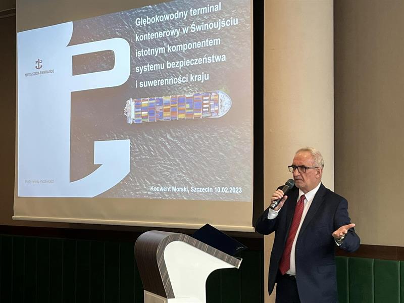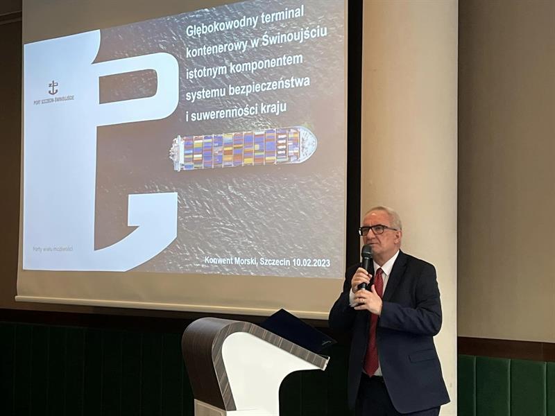 Podczas XV Konwentu Morskiego, który 10 lutego br. obradował w Szczecinie, szczególną uwagę poświęcono przyszłemu głębokowodnemu terminalowi kontenerowemu w Świnoujściu. Inwestycję przybliżył Krzysztof Urbaś, prezes Zarządu Morskich Portów Szczecin i Świnoujście, który omówił też inne przedsięwzięcia realizowane w zespole portów. Na wstępie podkreślił rolę portów morskich w zapewnieniu bezpieczeństwa i suwerenności kraju.