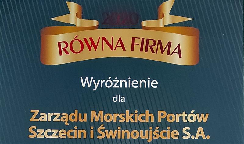 Zarząd Morskich Portów Szczecin i Świnoujście SA został wyróżniony tytułem „Równa Firma”. Plebiscyt po raz ósmy z rzędu zorganizowała Fundacja Biznes Innowacje Networking Wydziału Ekonomii, Finansów i Zarządzania Uniwersytetu Szczecińskiego. Celem plebiscytu jest wyróżnienie firm odpowiedzialnych społecznie, które wykazują się dbałością o pracowników, kontrahentów, społeczność oraz środowisko. W tym roku, w związku z pandemią koronawirusa, zarząd portu mocno się zaangażował w pomoc szpitalom.