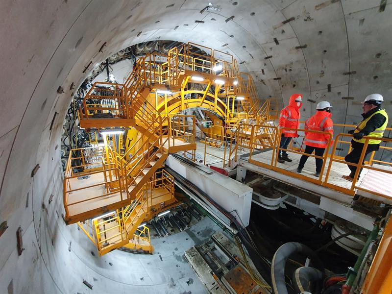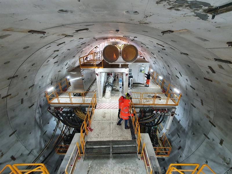 Na placu zgromadzono tzw. tubingi i pierścienie, które posłużą do obudowy tunelu. Siłowniki hydrauliczne odpychają maszynę drążącą od kolejno układanych pierścieni. Każdy pierścień składa się z ośmiu tubingów, które są umieszczane przez specjalny chwytak.