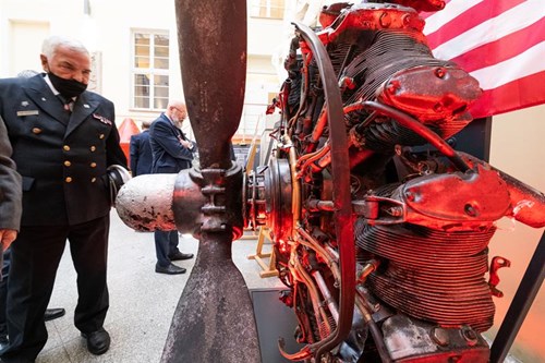 Rzeczywiście, jeden z czterech gwiazdowych silników przyciągał wzrok uczestników wernisażu. Należał do samolotu bombowego dalekiego zasięgu Boeing B-17 Flying Fortress. „Podczas prac na torze wodnym zostały znalezione i wydobyte różne elementy tego samolotu m.in. trójłopatowe śmigło, gwiazdowy silnik lotniczy Wright R-1820-97 Cyclone serii G oraz wielkokalibrowy karabin maszynowy Browning 50 cal M2 (nr 1183636)” – podano w szczegółowym opisie.