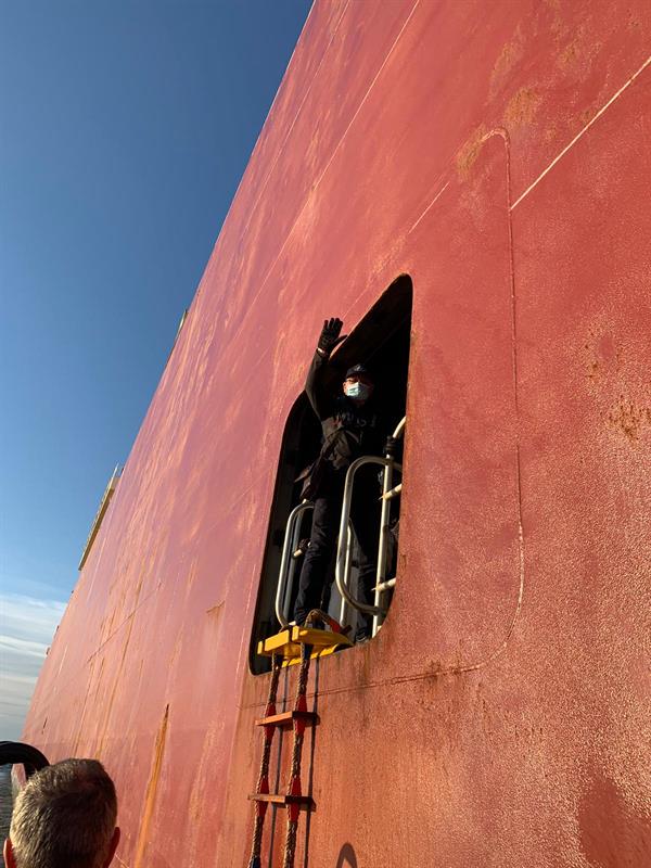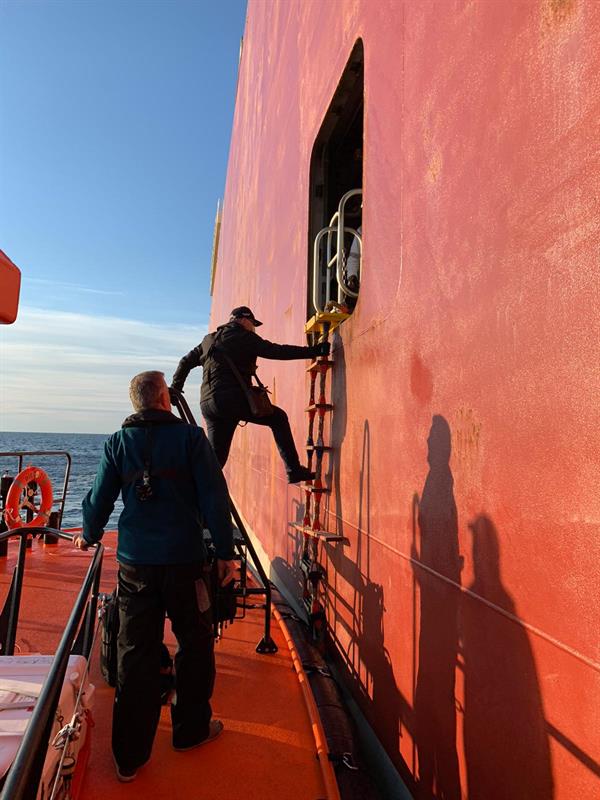 Do znajdującego się na redzie portu Świnoujście statku podpływa „Pilot 61”, którego załogę stanowi szyper i mechanik. Wiozą dwóch pilotów. Ci dostają się na gazowiec specjalnym włazem.