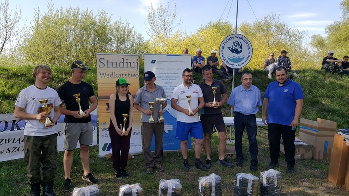 Moje oko przyciągnęli też studenci. Ku mojemu zdziwieniu, a i chyba nie tylko mojemu, dwójka z nich rozpoczęła wędkowanie bambusowymi kijami. Ale wstydzić się oczywiście nie ma potrzeby. Wielu starszych mistrzów zaczynało przecież od leszczyny i bambusa. Po czterech godzinach zmagań zaczęło się ważenie. Wśród seniorów najlepszy okazał się Krzysztof Nowaczyk z Koła „Karp” Szczecin, a swój puchar odebrał z rąk prodziekana Wydziału Nauk o Żywności i Rybactwa ZUT profesora Jacka Sadowskiego. Krzysztof okazał się najlepszy, łowiąc ponad 15 kilogramów ryb i oczywiście objął prowadzenie w tegorocznym Grand Prix. Drugie miejsce zajął Marcin Kwiatkowski z Koła Pyrzyce, a na trzecim Mariusz Strzelczyk z WKS „Pomot” (dawniej „Odra”) Chojna. Najlepszą z pań okazała się Sylwia Brodzik z Koła Pyrzyce, a wśród juniorów Seweryn Kałucki z Klubu Wędkarskiego „Marcus” Gryfino. Pierwsze miejsce w grupie „zutowskiej” zajął Jan Krzystolik z drugiego roku rybactwa. Wszystkim gratuluję!
