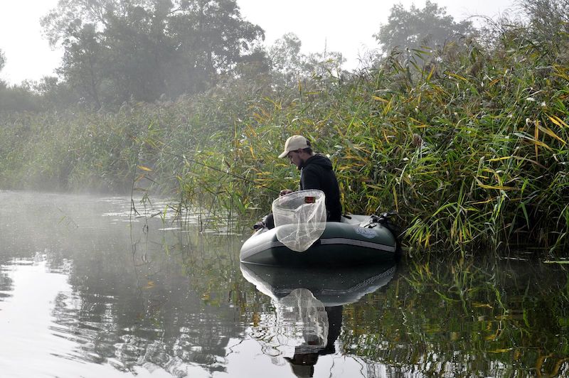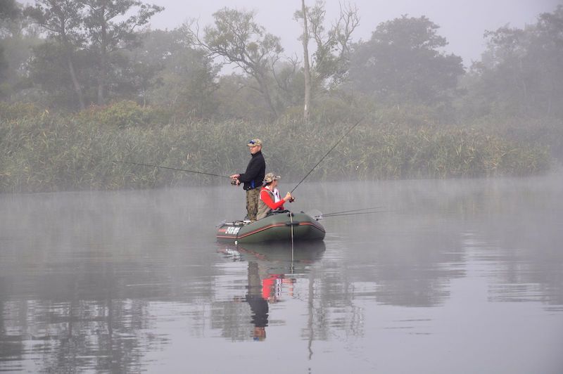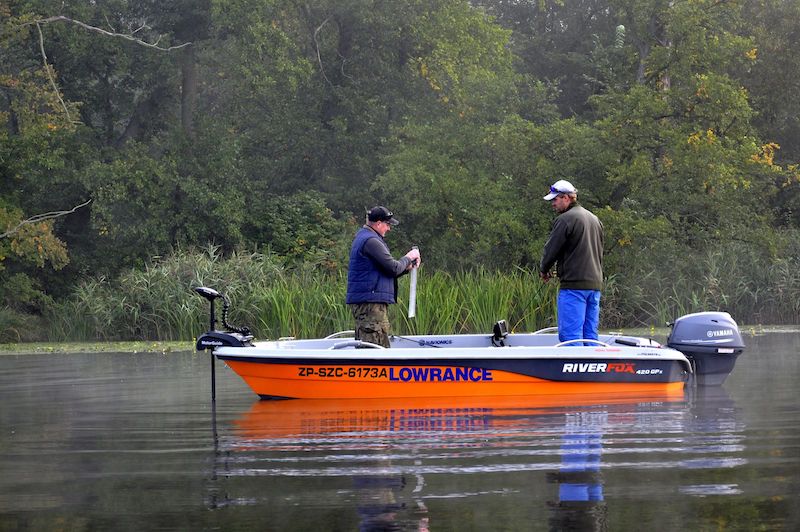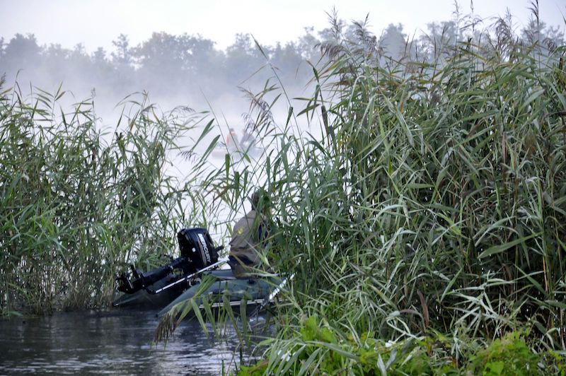 Tym razem to żadna przenośnia, a czysta prawda. Pierwsza tura rozgrywanych na Kanale Odyńca Spinningowych Indywidualnych Mistrzostw Okręgu PZW w Szczecinie z Łodzi rozpoczęła się w gęstej mgle. Podczas odprawy, która odbyła się w pobliżu Dziewoklicza, owszem, było ją widać, ale nic jeszcze nie wskazywało, że widoczność spadnie do kilkudziesięciu metrów. Na starcie stanęło osiemnastu zawodników. Moim skromnym zdaniem – niewielu. Sporo naszych kolegów ma przecież łódki i często spinninguje. Ja też wsiadłem na łódź i próbowałem porobić zdjęcia. Niestety, przez pierwsze dwie godziny było to niemożliwe. Później, owszem, pojawiło się słońce.