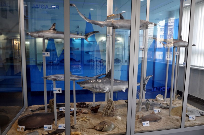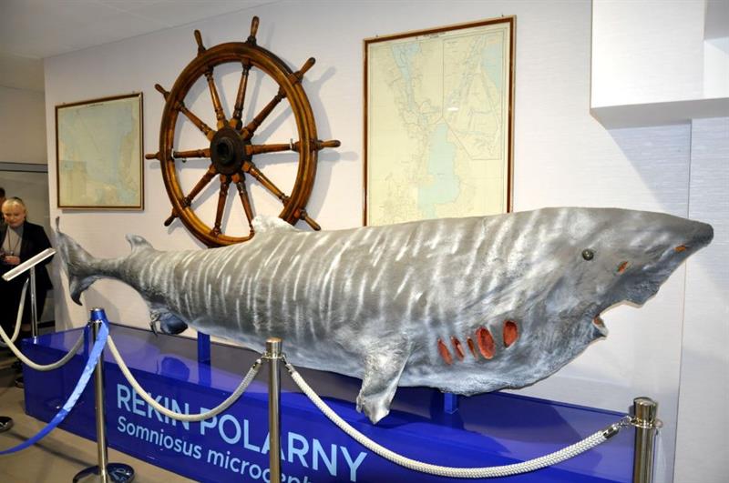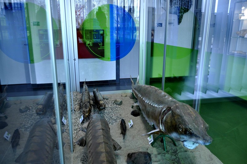 A w gronie tych kilkuset, które można zobaczyć, jest na przykład 4-metrowy okaz rekina polarnego, który ma około 400 lat. W gablotach zobaczyć można potężne jesiotry, które żyły w naszych wodach jeszcze w latach 70. Teraz naukowcy próbują odtworzyć jego populację. Tak samo jak naszego lokalnego łososia z Drawy. Obejrzeć można też między innymi, jak wyglądają płaszczki ze swoimi narządami elektrycznymi, zobaczymy rekina młota, kosogona żarłacza, ginące minogi oraz węgorze, które aby się rozrodzić, migrują tysiące kilometrów do Morza Sargassowego. Do Europy wróci tylko potomstwo.