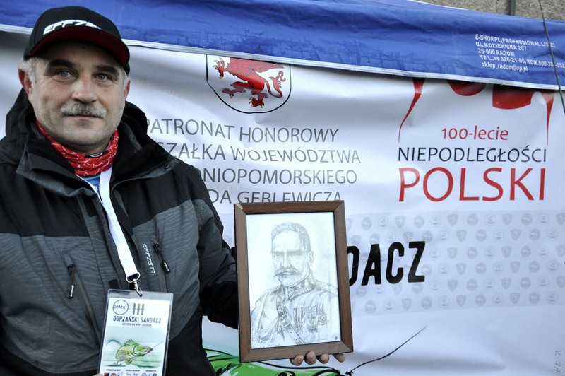 – Ta tegoroczna, rozgrywana w ostatnią sobotę, miała wymiar szczególny. Spotkaliśmy się nad rzeką w roku, kiedy nasz kraj obchodzi setną rocznicę niepodległości. Honorowy patronat nad zawodami objął marszałek województwa zachodniopomorskiego Olgierd Geblewicz. Przyjechało do nas 162 zawodników – między innymi z Katowic, Łodzi, Poznania czy Warszawy – dodaje wiceprezes koła Wiktor Biczkowski. – Jak co roku przy okazji zawodów rozpoczynamy aukcję naprawdę cennych przedmiotów. Są wśród nich najczęściej akcesoria wędkarskie. Kołowrotki, wędki czy przynęty. W tym roku dostaliśmy na licytację coś bardzo niecodziennego. Przyjechali do nas koledzy z Sulejówka. Miejsca, gdzie urodził się Józef Piłsudski. Przywieźli ze sobą wykonany ręcznie portret Marszałka.